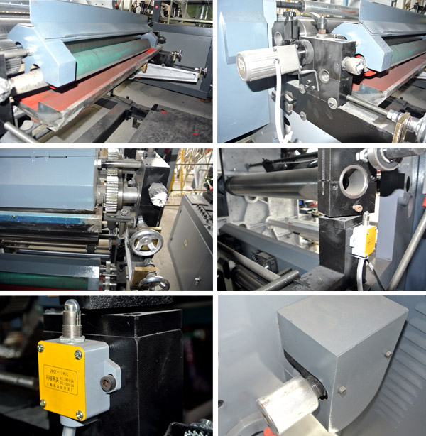 3、氣動(dòng)起落印版滾筒,升降后油墨自動(dòng)攪拌。