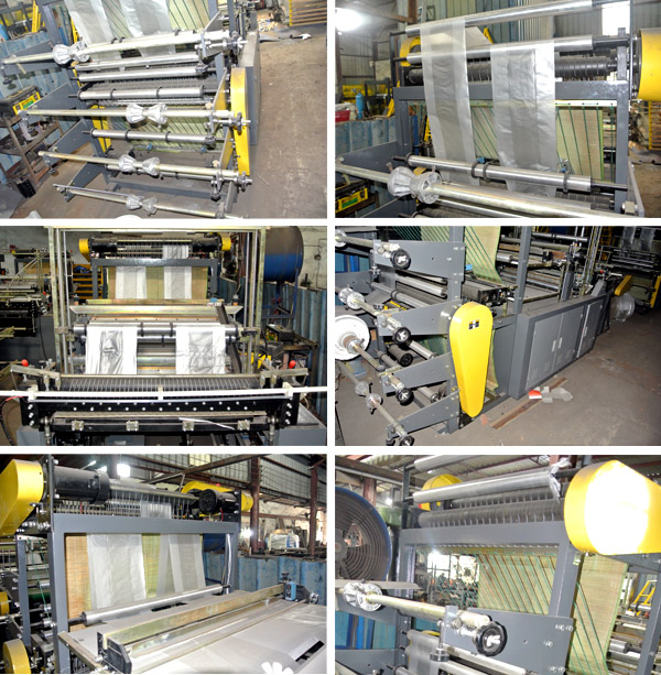 本機(jī)由三種型號(hào)主要生產(chǎn)可裝食品的PE(LDPE)(HDPE)半弧形袋及其他用途的PVC熱收縮膜袋。采用步進(jìn)電機(jī),配合操作簡(jiǎn)單的微電腦,數(shù)值控制器,以數(shù)字按鍵,能在數(shù)秒鐘內(nèi)變換各種長(zhǎng)度,節(jié)省人力物力。毛邊廢料自動(dòng)脫離切掉, 成品一次完成,確保品質(zhì)穩(wěn)定,提高競(jìng)爭(zhēng)力??梢园状p排作業(yè)。成品整疊收集輸送裝置。標(biāo)志光電眼,控制印刷袋。