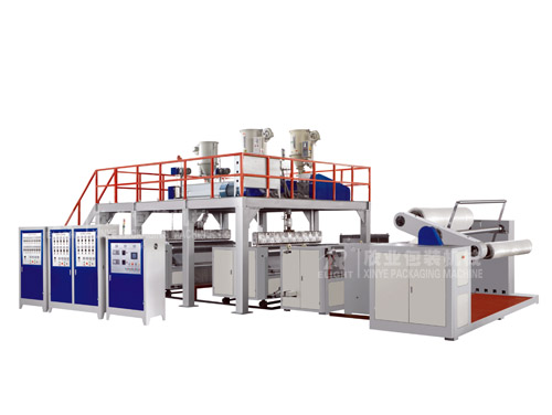 本機(jī)組適用于生產(chǎn)低密度聚乙烯(LDPE)或線型低密度聚乙烯(LLDPE)塑料流延薄膜。該機(jī)采用單螺桿擠出,生產(chǎn)的薄膜可達(dá)到兩邊粘的效果;若采用雙螺桿,兩個(gè)進(jìn)料斗的原料使用不同的配方,生產(chǎn)的薄膜可達(dá)到一邊粘的效果,廣泛用于建筑材料、五金配件等包裝。