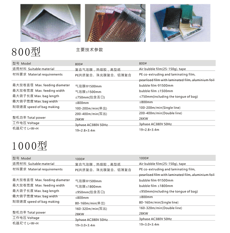 全自動(dòng)氣泡膜信封袋制袋機(jī)(一出二可不停機(jī)換料)