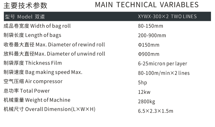 該機(jī)由本公司吸取國外先進(jìn)技術(shù)研制成功的設(shè)備。它以LDPF、LHPF筒膜為材料,生產(chǎn)穿帶垃圾袋或折疊連卷袋,本機(jī)采用電腦控制、伺服、(步進(jìn))定長、光電跟蹤、自動計(jì)數(shù)、到數(shù)報(bào)警、自動糾偏、自動控溫、同時具有自動剖口、打孔、對折、點(diǎn)斷、連卷等功能,是生產(chǎn)穿帶垃圾袋的理想設(shè)備。
